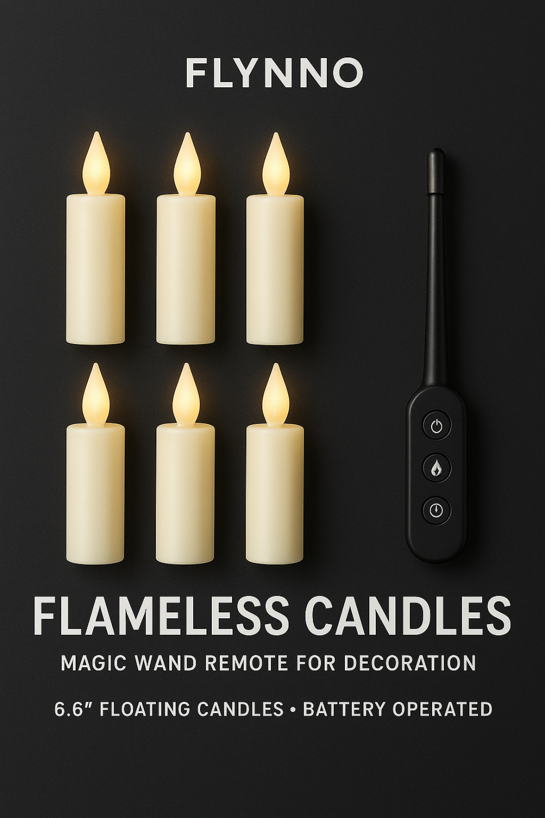 Flameless Candles with Magic Wand Remote for Decoration, 6.6" Floating Candles Battery Operated Hanging Window Candles, Flickering Electric LED Candle for Christmas Halloween Decorations